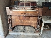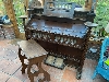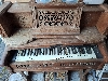 The body is in solid condition, with expected wear-and-tear due to its age & use. The wood is carved in a very attractive design. It now needs a bit of work on it - mainly the bellows have gone very weak, so you pedal away as fast as you can for very little speed and volume. Also 2 keys aren't sounding. The bodywork is sound, a bit rough around the edges, needs cleaning & touching up to be perfect. There was an upper decorative section to it with mirror, but this advert is just for the lower harmonium section itself, as shown in the photos.