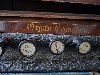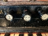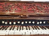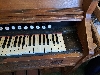 Stops (from left): Bass coupler, Bourdon Bass 16ft, Diapason Bass 8ft, Dolce 8ft, Viola 4ft, Vox Humana, Principal Treble 4ft, Dulcet 8ft, Diapason Treble 8ft, Bourdon Treble 16ft, Treble coupler.