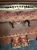 Organ 2: Malcolm Organs brand. In full working order. Pedal/ pump action.  Worn fabric on the pedals and there is some damage to the reverse although this doesn't affect the sound or playing of the instrument.