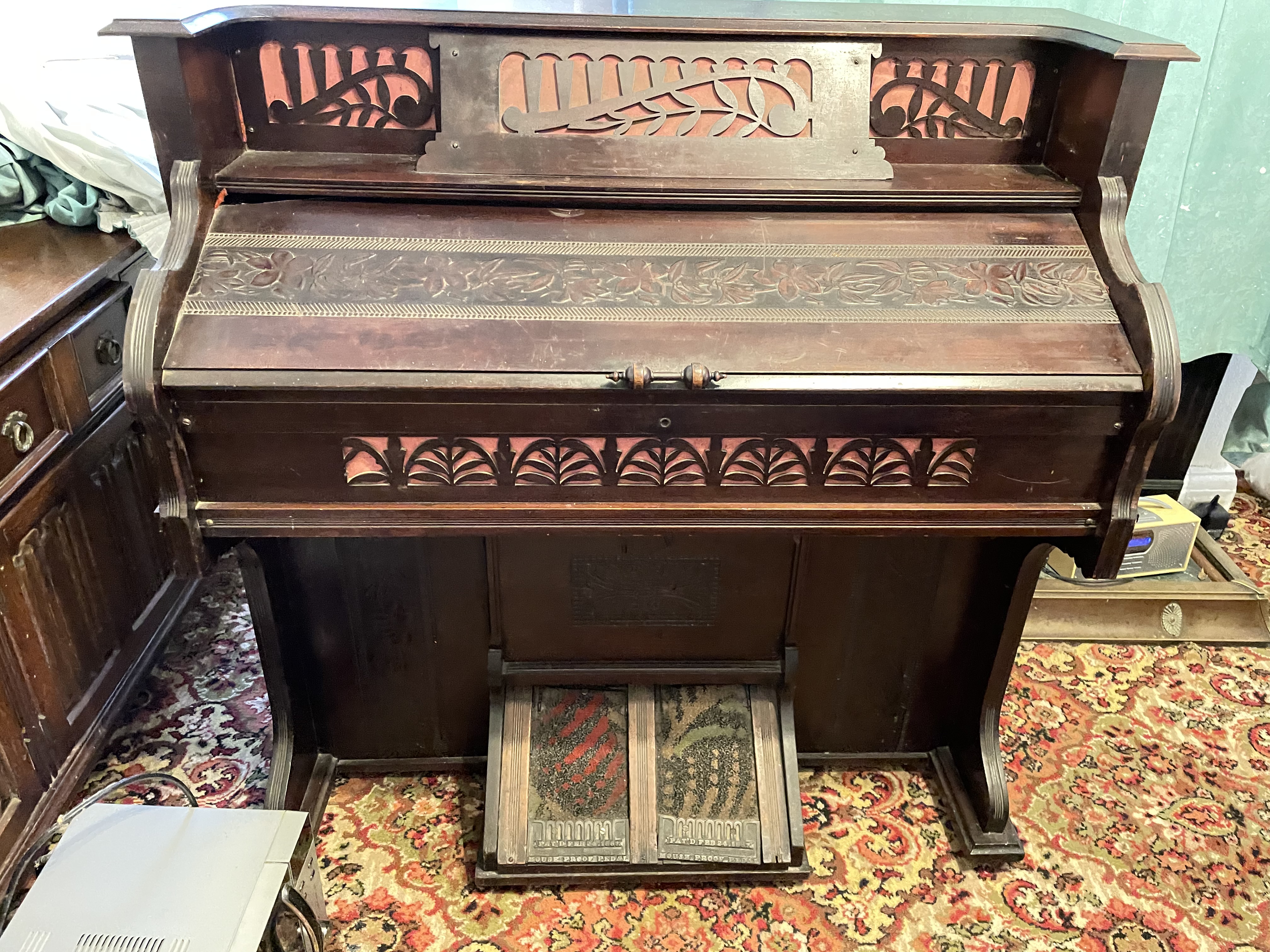 This is a Hillier Organ Co. pump organ in need of restoration.